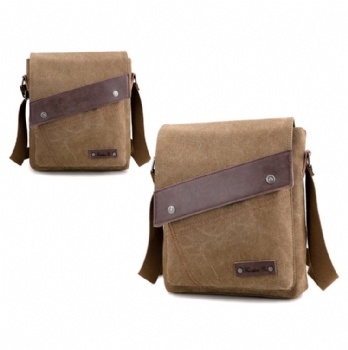 水洗灰色粗犷的男士立式皮革帆布肩挎包男士街头包